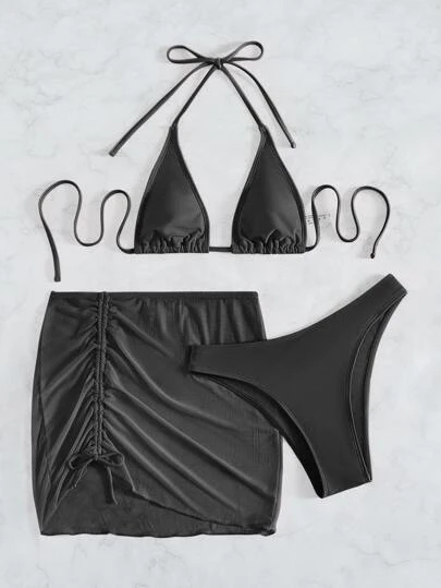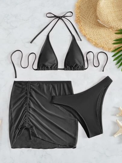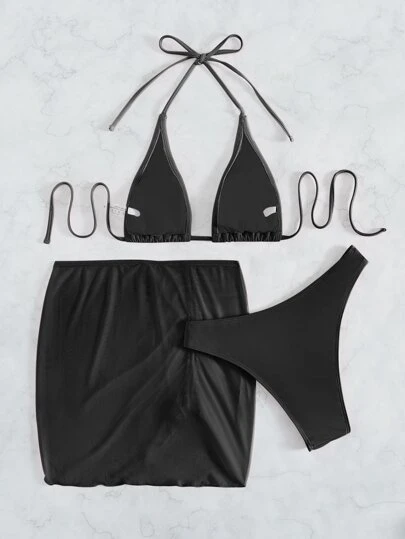 Be the first to review “3pack Solid Halter Bikini Swimsuit & Beach Skirt” Cancel reply