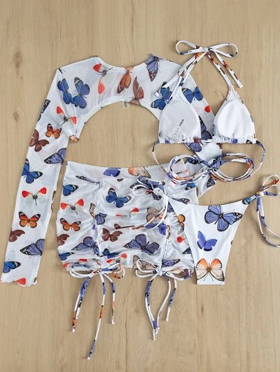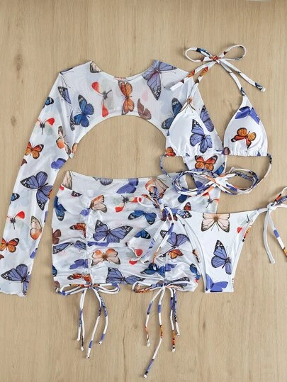Be the first to review “4pack Butterfly Print Lace Up Bikini Swimsuit & Cover Up Top With Skirt” Cancel reply