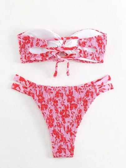 Be the first to review “Allover Floral Print Smocked Bandeau Bikini Swimsuit” Cancel reply
