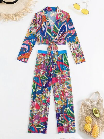 Be the first to review “Allover Print Knot Front Cover Up Set” Cancel reply