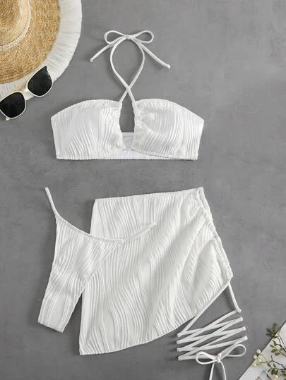 Be the first to review “BOUDOIRCORE Plain Halter Bikini Swimsuit With Beach Skirt” Cancel reply