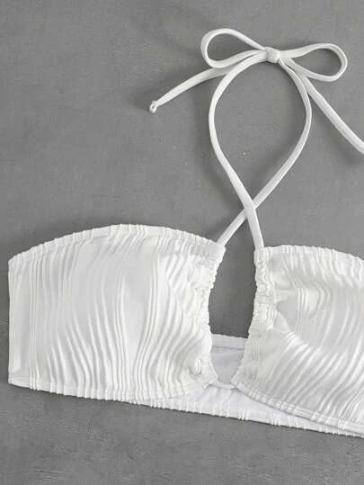 Textured Fake Pearls Decor Halter Triangle Bra & Thong Bottom 2 Piece Bathing Suit