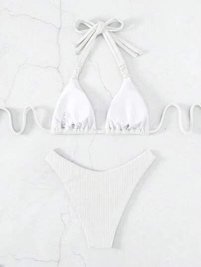 Be the first to review “Cable Knit Bikini Set Halter Triangle Bra & Cheeky Bottom 2 Piece Bathing Suit” Cancel reply