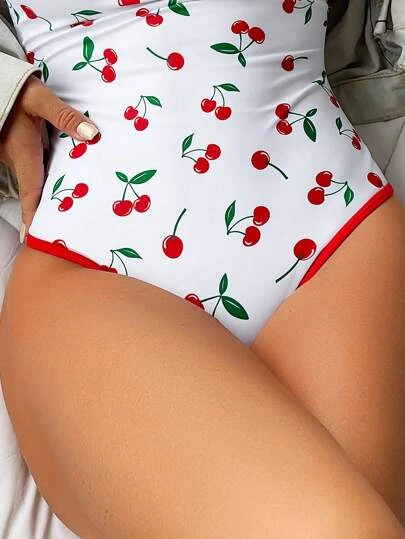 Be the first to review “Cherry Print Tie Shoulder One Piece Swimsuit” Cancel reply