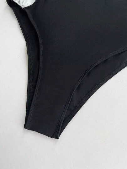 2pack Ring Detail Cut Out Halter High Cut Garter One Piece Swimsuit