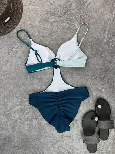 Be the first to review “Colorblock Ring Detail Cut Out Ruched Monokini” Cancel reply