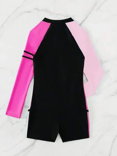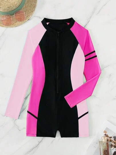 Be the first to review “Colorblock Zipper Front Raglan Sleeve One Piece Swimsuit” Cancel reply