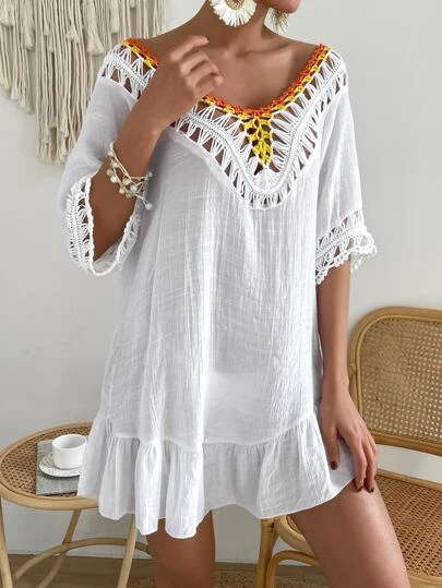 Be the first to review “Contrast Crochet Ruffle Hem Cover Up” Cancel reply