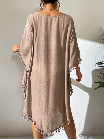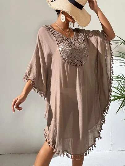 Be the first to review “Contrast Crochet Tassel Trim Cover Up Dress” Cancel reply