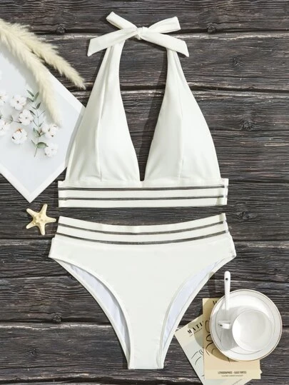 Be the first to review “Contrast Mesh Halter Bikini Swimsuit” Cancel reply