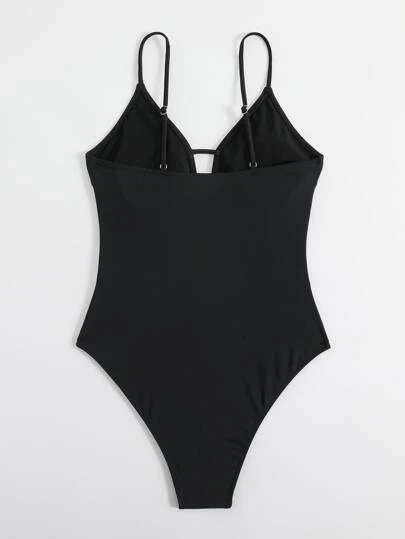 2pack Ring Detail Cut Out Halter High Cut Garter One Piece Swimsuit