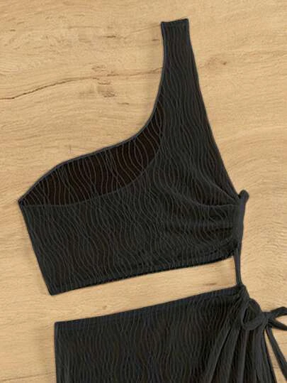 SHEIN VCAY One Shoulder Cut Out Drawstring Side Trumpet Sleeve Cover Up Dress Without Bikini