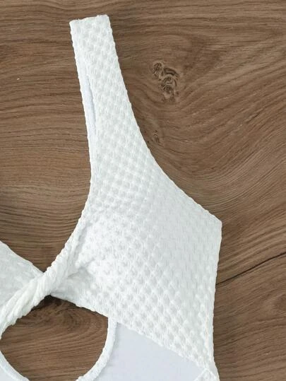 2pack Ring Detail Cut Out Halter High Cut Garter One Piece Swimsuit