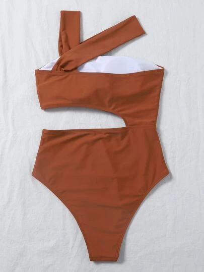 Women’s One Piece Swimsuit Sexy Asymmetric Pure Color Mono-bikini