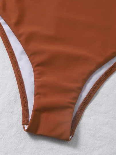 2pack Ring Detail Cut Out Halter High Cut Garter One Piece Swimsuit
