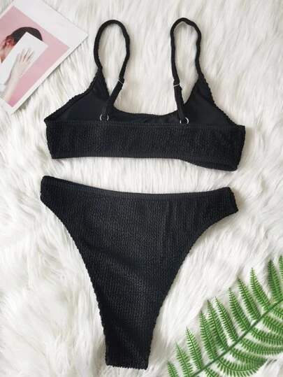 Be the first to review “European And American Summer New Bikini Women’s Hollow Solid Color High Waist Split Swimsuit Two-Piece Set With Chest Pad” Cancel reply