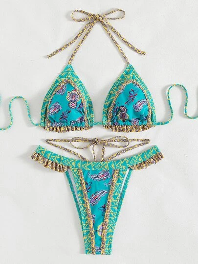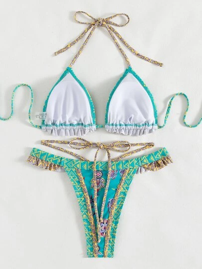 Be the first to review “Floral & Geo Print Triangle Thong Bikini Swimsuit” Cancel reply