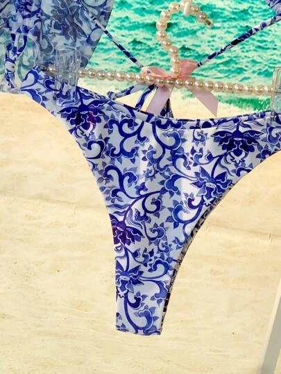 Be the first to review “Floral Print Halter Triangle Bikini Swimsuit With Beach Skirt” Cancel reply