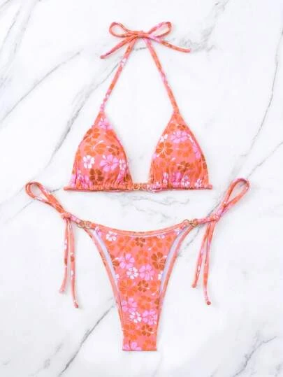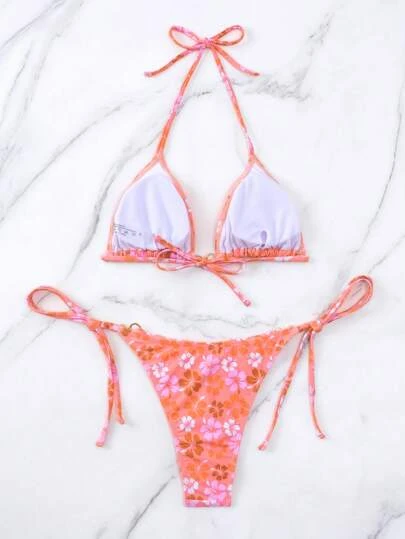 Be the first to review “Floral Print Halter Triangle Tie Side Bikini Swimsuit” Cancel reply