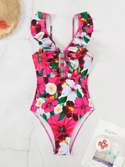 Be the first to review “Floral Print Ruffle Trim One Piece Swimsuit” Cancel reply