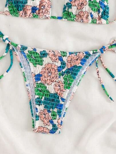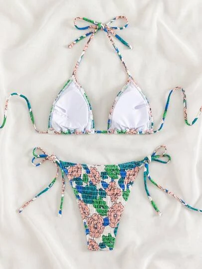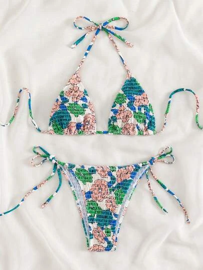 Be the first to review “Floral Print Smocked Halter Triangle Bikini Swimsuit” Cancel reply