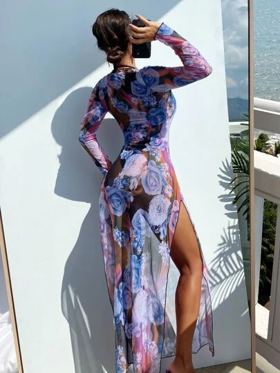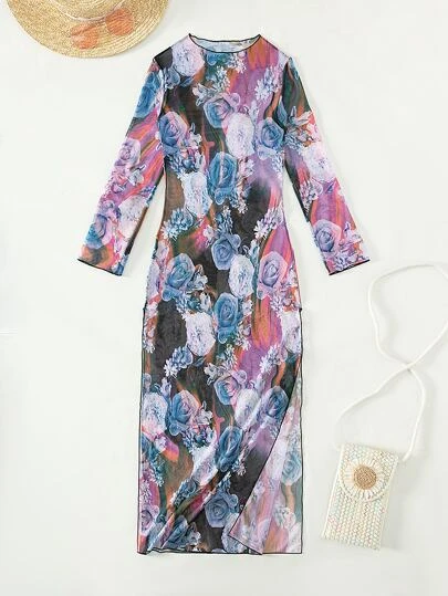 Be the first to review “Floral Print Split Thigh Cover Up” Cancel reply