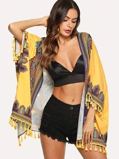Be the first to review “Floral Print Tassel Trim Kimono” Cancel reply