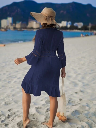 Be the first to review “Guipure Lace Insert Flounce Sleeve Ruffle Hem Tie Front Kimono” Cancel reply