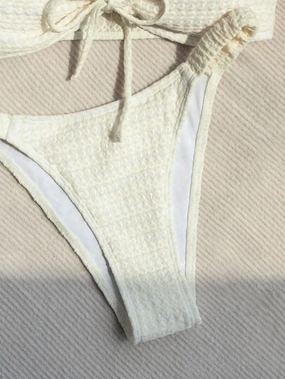 Textured Fake Pearls Decor Halter Triangle Bra & Thong Bottom 2 Piece Bathing Suit