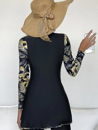 Be the first to review “Leaf Print Zipper Front Long Sleeve Tankini Top” Cancel reply