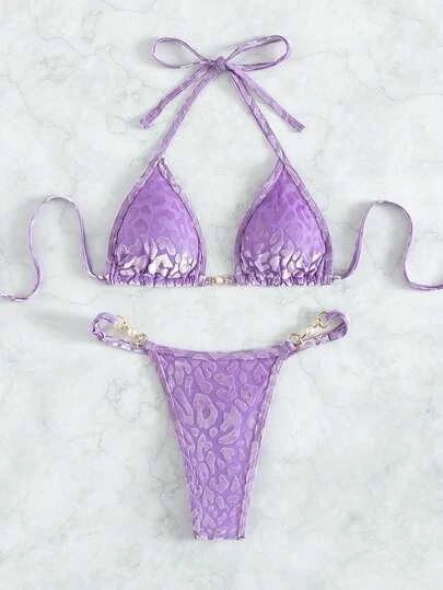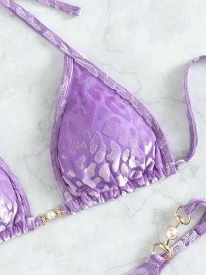 Be the first to review “Leopard Print Velvet Faux Pearl Decor Triangle Bikini Swimsuit” Cancel reply