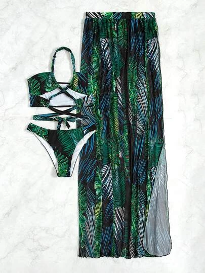 Be the first to review “Palm Leaf Print Criss Cross Halter Bikini Swimsuit” Cancel reply