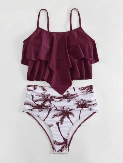 Be the first to review “Palm Tree Print Ruffle Hem Bikini Swimsuit” Cancel reply