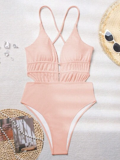 Be the first to review “Plain Plunging Neck Backless One Piece Swimsuit” Cancel reply