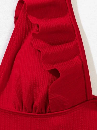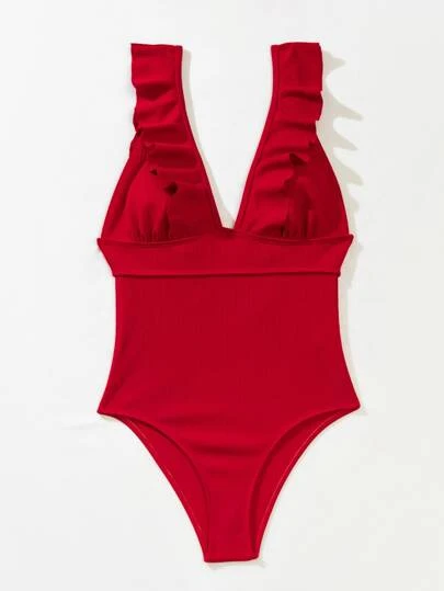 Be the first to review “Plain Textured Ruffle Trim One Piece Swimsuit” Cancel reply