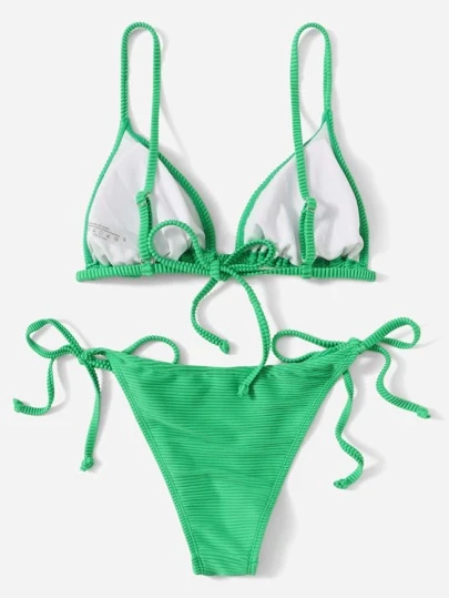 Be the first to review “Ribbed Bikini Set Tie Back Triangle Bra Top & Tie Side Bikini Bottom 2 Piece Bathing Suit” Cancel reply