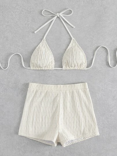 Be the first to review “Schiffy Bikini Set Tie Back Halter Triangle Bra Top & Shorts 2 Piece Swimsuit” Cancel reply