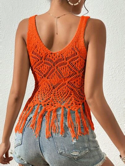Be the first to review “SHEIN VCAY Fringe Hem Hollow Out Cover Up Top” Cancel reply