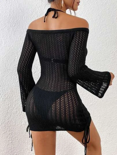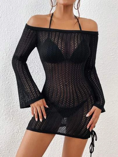 Be the first to review “SHEIN VCAY Hollow Out Drawstring Side Off Shoulder Cover Up Dress Without Bikini Set” Cancel reply
