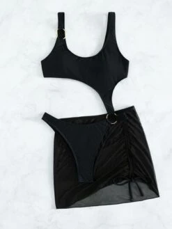 BOUDOIRCORE Cut Out One Shoulder Bikini Swimsuit With 1pair Leg Ring