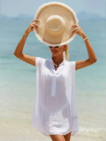 Be the first to review “Solid Button Front Sleeveless Cover Up Dress” Cancel reply