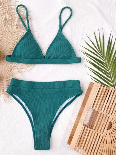 Be the first to review “Solid Rib Triangle High Waisted Bikini Swimsuit” Cancel reply