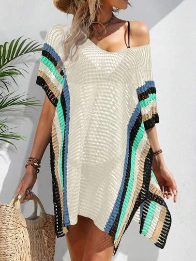 Be the first to review “Striped Pattern Batwing Sleeve Cover Up Dress Without Bikini” Cancel reply