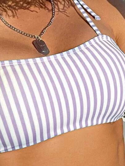 Be the first to review “Striped Tie Shoulder Bikini Swimsuit” Cancel reply