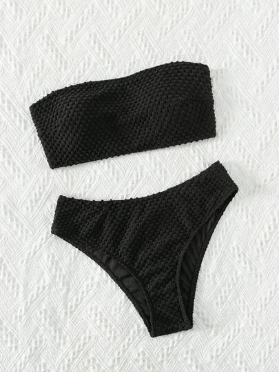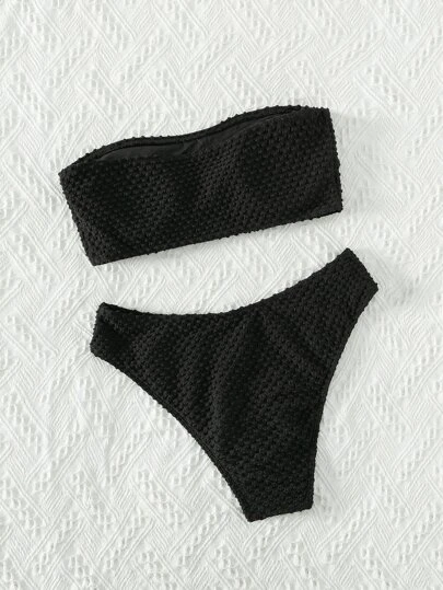 Be the first to review “Textured Bikini Set Bandeau Top & High Waisted Bottom 2 Piece Swimsuit” Cancel reply