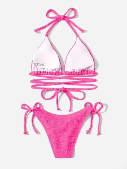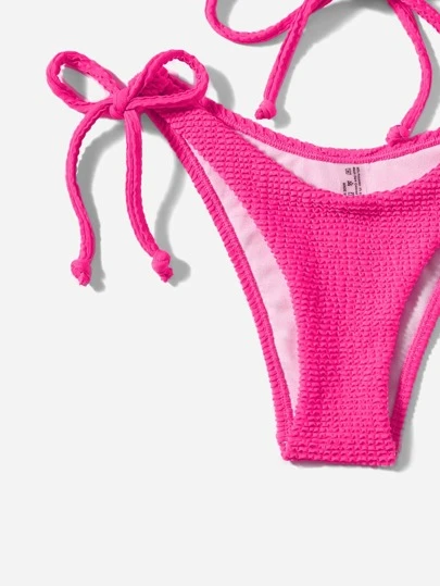 Be the first to review “Textured Bikini Set Halter Triangle Bra Top & Tie Side Bikini Bottom 2 Piece Bathing Suit” Cancel reply