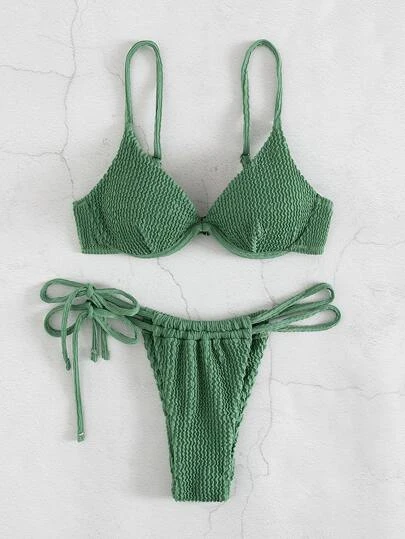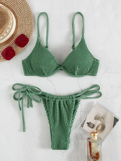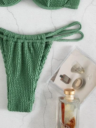 Be the first to review “Textured Bikini Set Underwire Push Up Bra & Thong Bottom 2 Piece Bathing Suit” Cancel reply