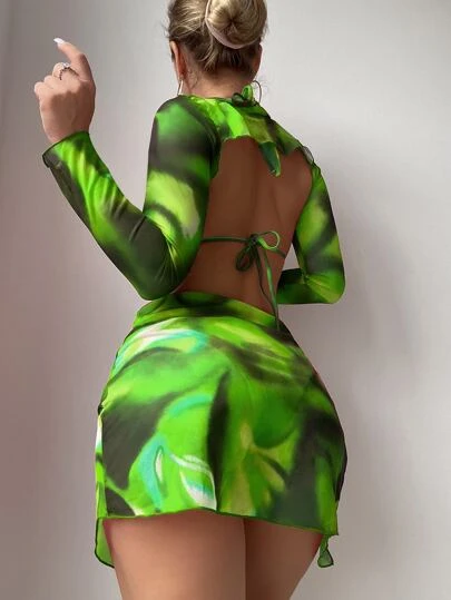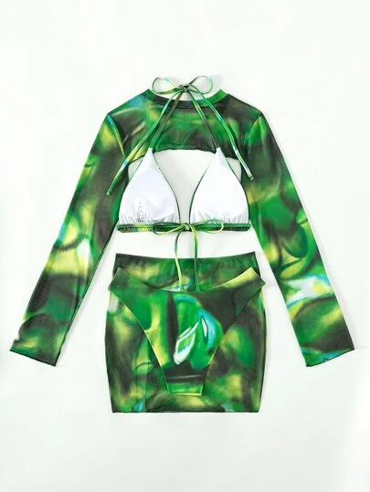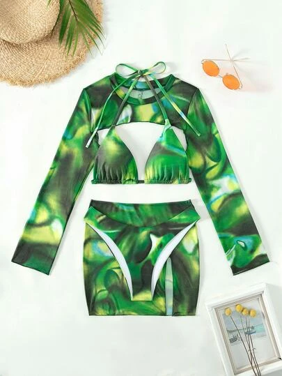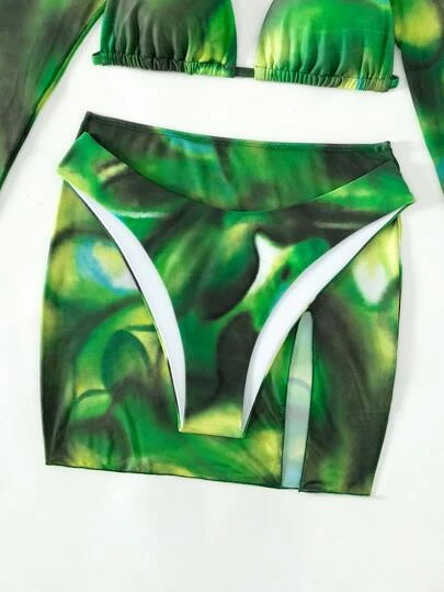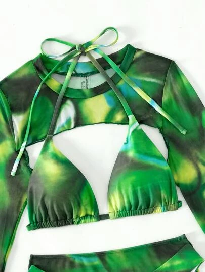 Be the first to review “Tie Dye Halter Triangle Bikini Swimsuit With Cover Up Set” Cancel reply