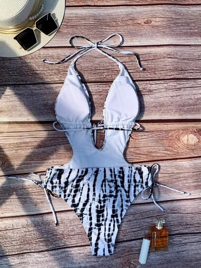 Be the first to review “Tie Dye Print Cut Out Tie Side Halter Neck Backless One Piece Swimsuit” Cancel reply