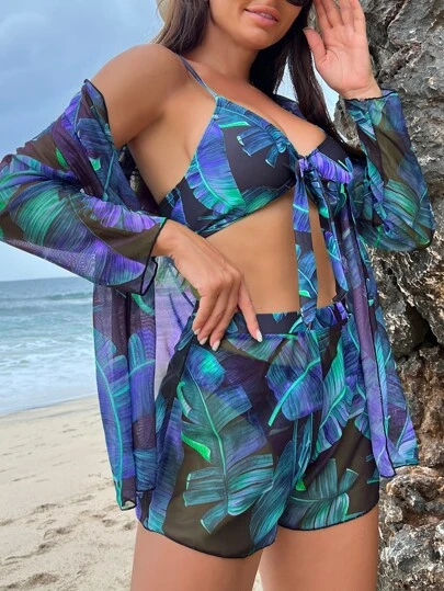 Be the first to review “Tropical Print Knot Front Bikini Swimsuit With Kimono” Cancel reply